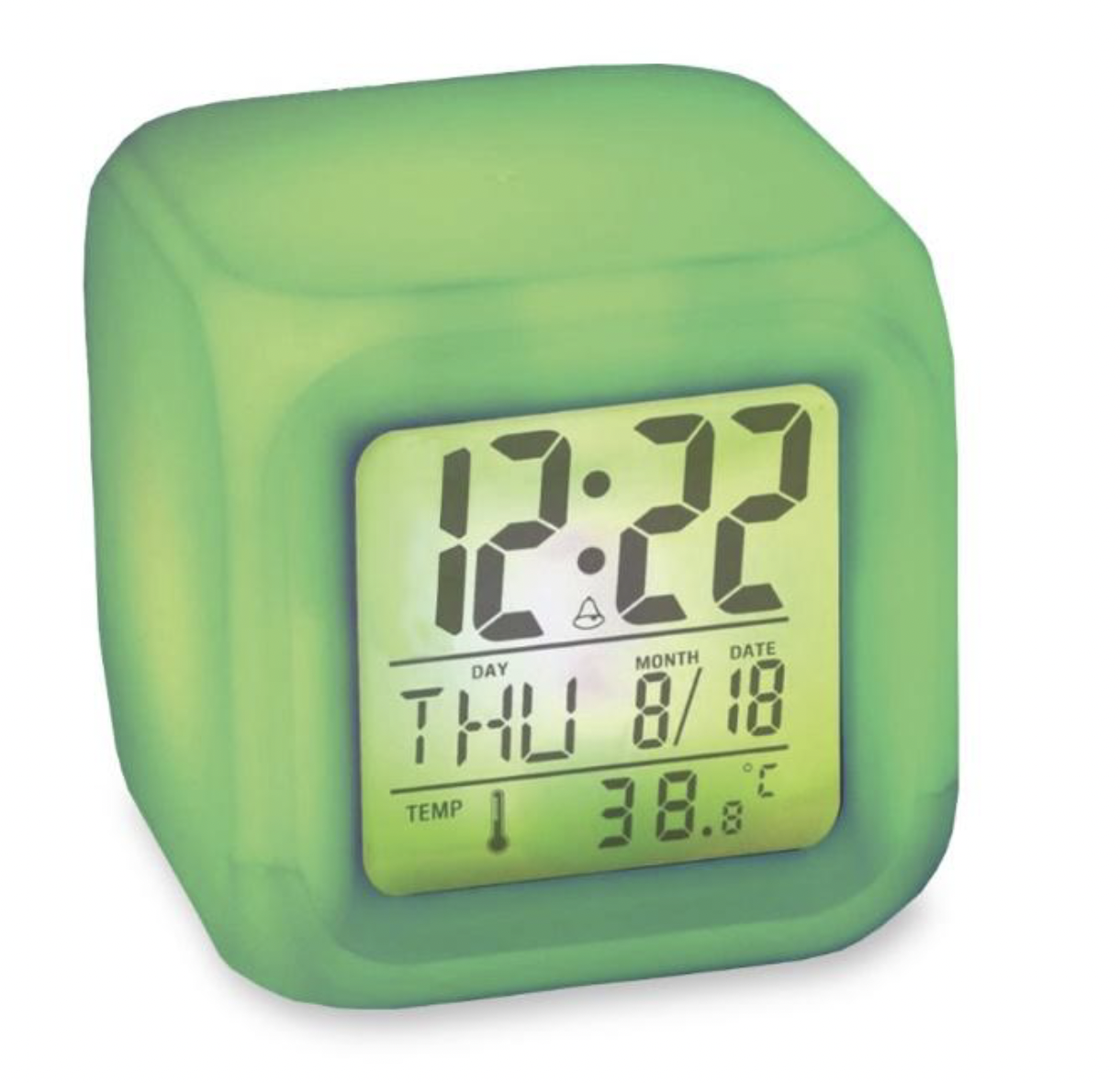 The GLOW CUBE is a compact, multi-functional timepiece designed to add both utility and a vibrant atmosphere to any room. Measuring exactly 3 inches, this minimalist cube features a large, easy-to-read digital display that shows the time, date, and temperature at a glance. Its standout feature is the integrated LED color-changing technology, which allows the entire housing to glow in a soft, cycling spectrum of colors.